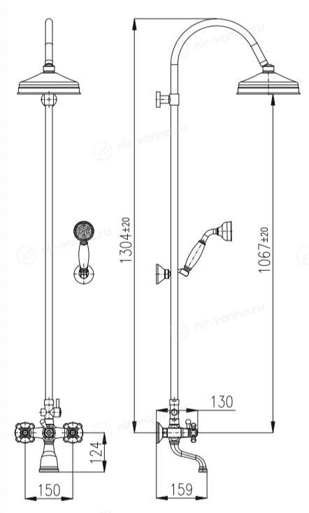 Душевая стойка Rav Slezak Morava Retro MK159.5/3SM с изливом бронза