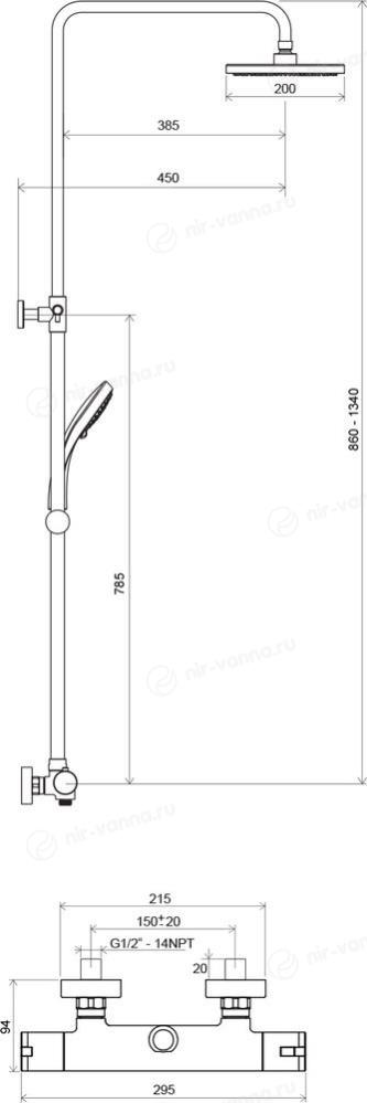 Душевая стойка Ravak Termo 100 TE 091.00/150 с термостатом, с тропическим и ручным душем