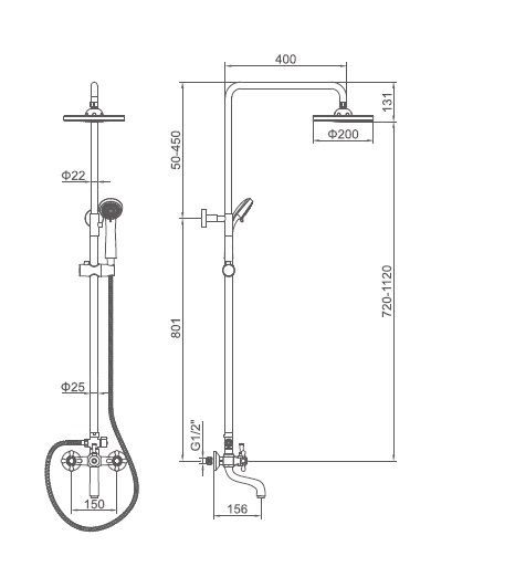 Смеситель Accoona Зонт Люкс A8371 для ванны и душа