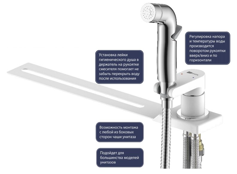 Смеситель Lemark Solo LM7170CW с гигиеническим душем, устанавливаемый на унитаз