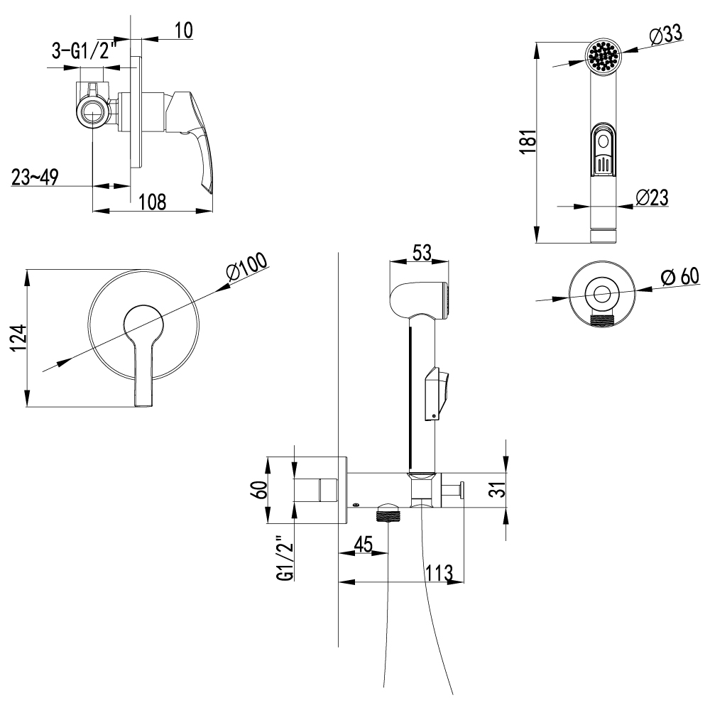 Смеситель встраиваемый Lemark Plus Strike LM1119C с гигиеническим душем, встраиваемый