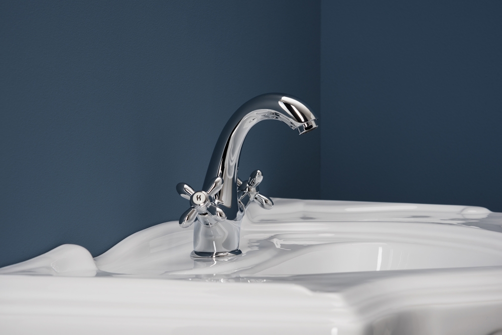 Цвет модели — хром. Это модное дизайнерское решение, которое удачно вписывается в Ретро. Чтобы смеситель долго сохранял привлекательный вид, при уходе рекомендуется исключить абразивные и агрессивные химические вещества.
