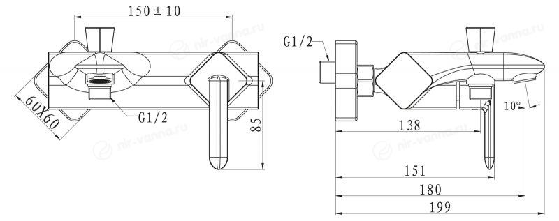 Смеситель BelBagno Crystal для ванны и душа без душевых аксессуаров