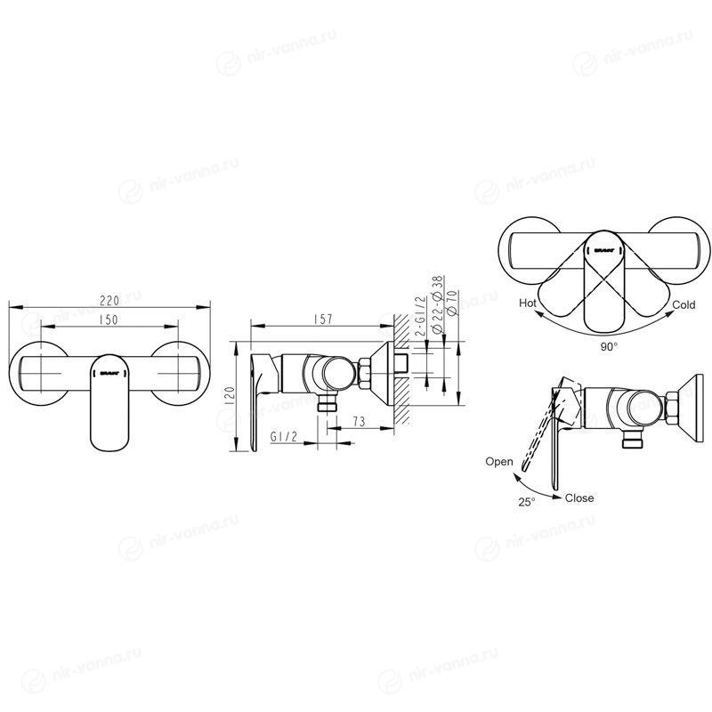 Смеситель для душа Bravat позволяет легко отрегулировать напор горячей и холодной воды и получить поток нужной температуры. Для изготовления прибора используется латунь — долговечный материал, устойчивый к поверхностным механическим повреждениям и окислению. Тип управления — рычажное — делает смеситель надежным и простым в использовании.