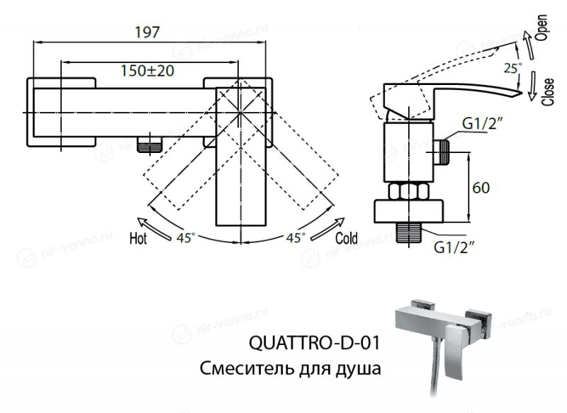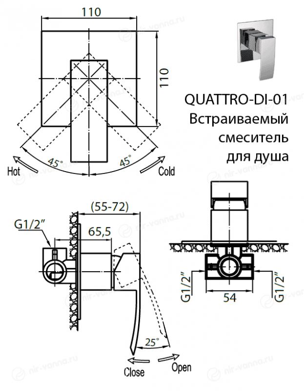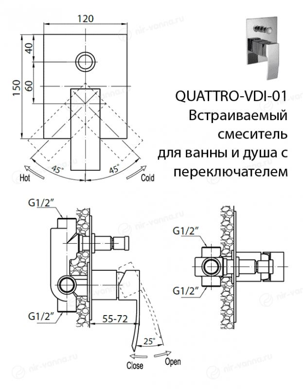 Смеситель Cezares Quattro DI для душа скрытый монтаж хром