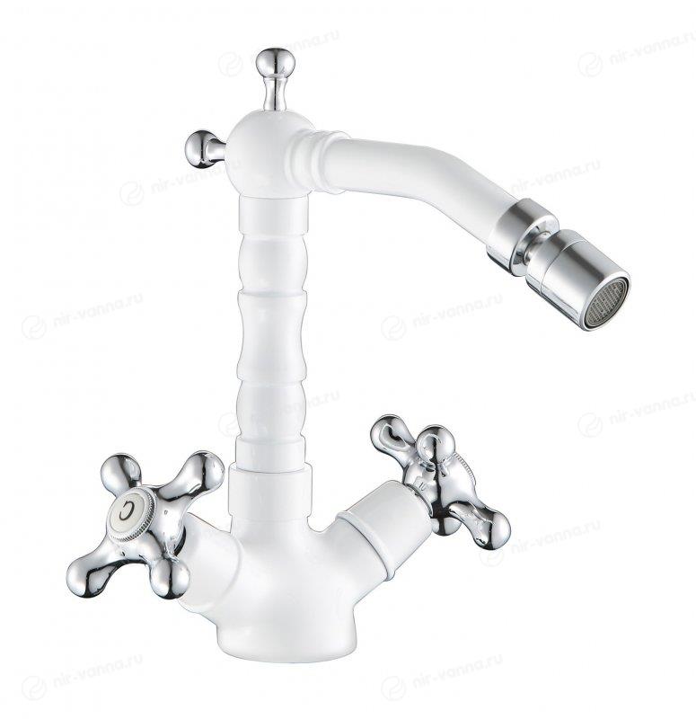 Цвет модели — белый-хром. Это модное дизайнерское решение, которое удачно вписывается в Ретро. Чтобы смеситель долго сохранял привлекательный вид, при уходе рекомендуется исключить абразивные и агрессивные химические вещества.