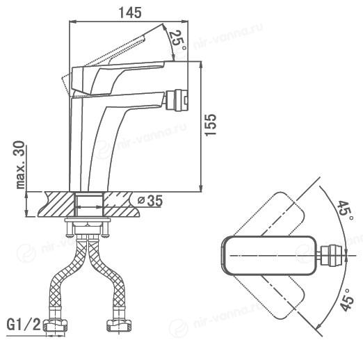 Смеситель для биде D&K позволяет легко отрегулировать напор горячей и холодной воды и получить поток нужной температуры. Для изготовления прибора используется латунь — долговечный материал, устойчивый к поверхностным механическим повреждениям и окислению. Тип управления — рычажное — делает смеситель надежным и простым в использовании.