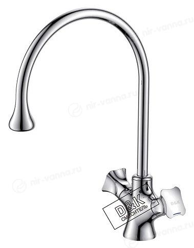 Смеситель для кухонной мойки D&K позволяет легко отрегулировать напор горячей и холодной воды и получить поток нужной температуры. Для изготовления прибора используется латунь — долговечный материал, устойчивый к поверхностным механическим повреждениям и окислению. Тип управления — вентильное — делает смеситель надежным и простым в использовании.
