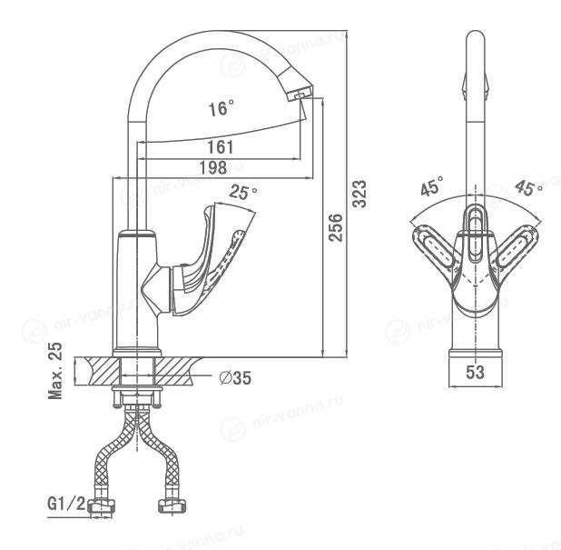 Цвет модели — хром. Это модное дизайнерское решение, которое удачно вписывается в современный стиль. Чтобы смеситель долго сохранял привлекательный вид, при уходе рекомендуется исключить абразивные и агрессивные химические вещества.
