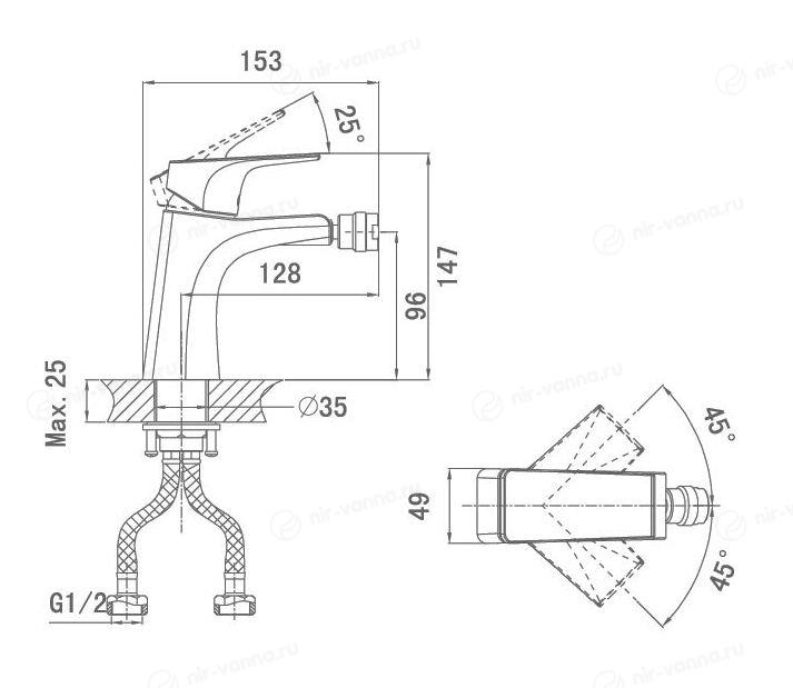 Смеситель для биде D&K позволяет легко отрегулировать напор горячей и холодной воды и получить поток нужной температуры. Для изготовления прибора используется латунь — долговечный материал, устойчивый к поверхностным механическим повреждениям и окислению. Тип управления — рычажное — делает смеситель надежным и простым в использовании.