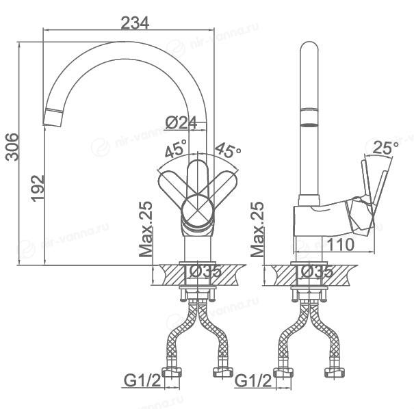 Цвет модели — хром. Это модное дизайнерское решение, которое удачно вписывается в современный стиль. Чтобы смеситель долго сохранял привлекательный вид, при уходе рекомендуется исключить абразивные и агрессивные химические вещества.
