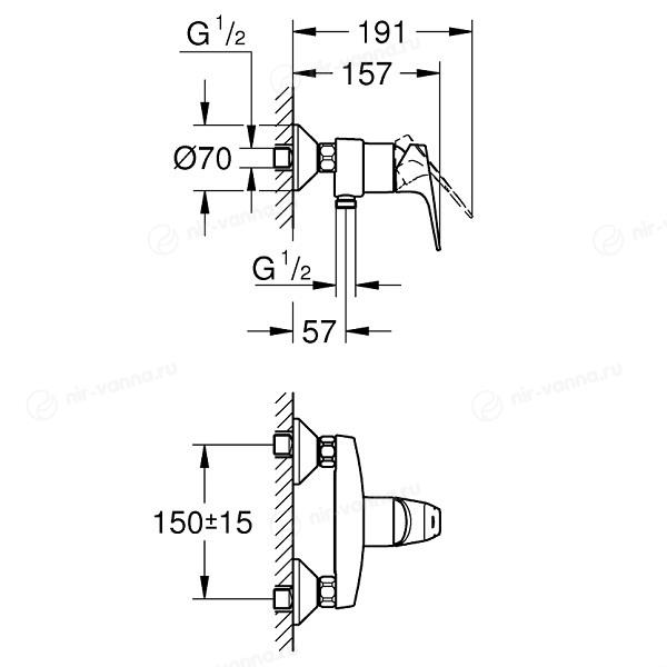 Смеситель для душа Grohe позволяет легко отрегулировать напор горячей и холодной воды и получить поток нужной температуры. Для изготовления прибора используется латунь — долговечный материал, устойчивый к поверхностным механическим повреждениям и окислению. Тип управления — рычажное — делает смеситель надежным и простым в использовании.
