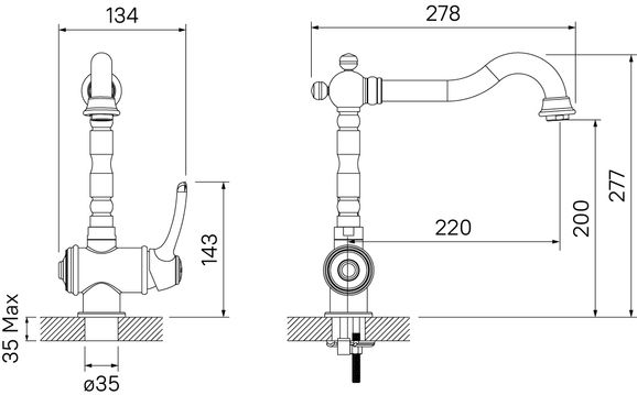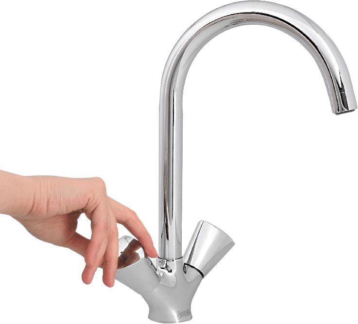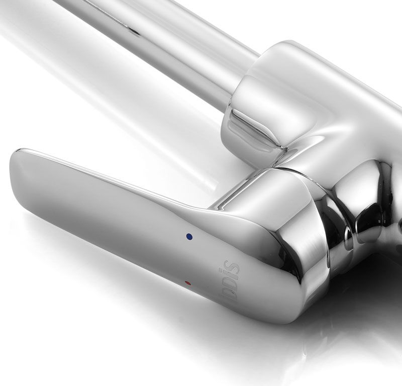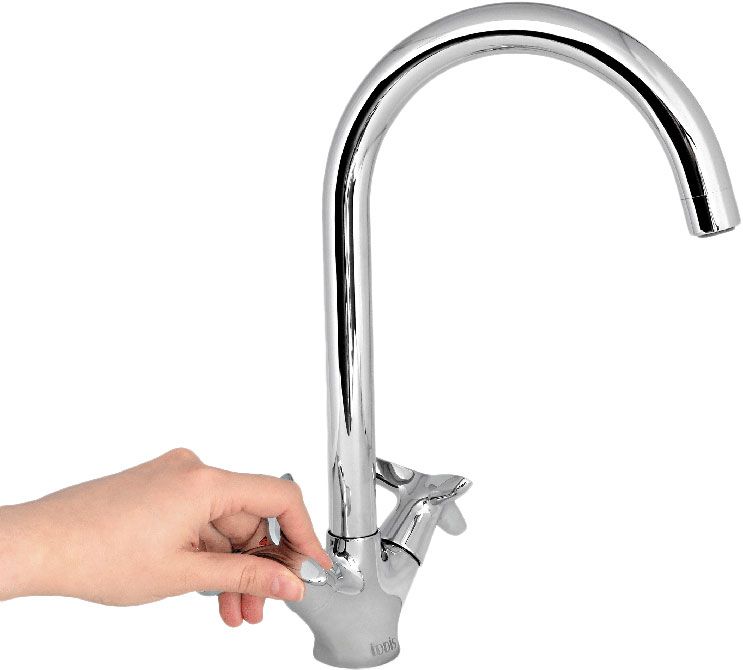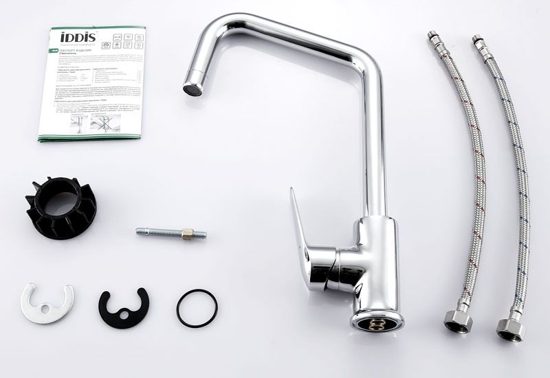 Смеситель для кухонной мойки Iddis позволяет легко отрегулировать напор горячей и холодной воды и получить поток нужной температуры. Для изготовления прибора используется латунь — долговечный материал, устойчивый к поверхностным механическим повреждениям и окислению. Тип управления — вентильное — делает смеситель надежным и простым в использовании.