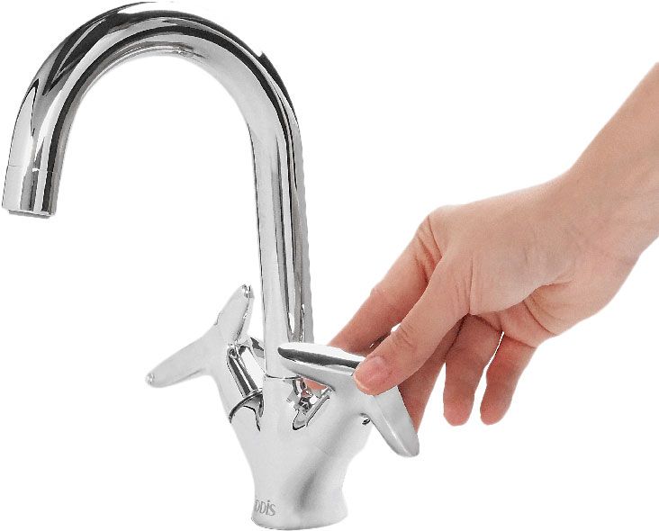 Смеситель для раковины Iddis позволяет легко отрегулировать напор горячей и холодной воды и получить поток нужной температуры. Для изготовления прибора используется латунь — долговечный материал, устойчивый к поверхностным механическим повреждениям и окислению. Тип управления — рычажное — делает смеситель надежным и простым в использовании.