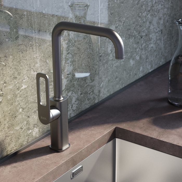 Смеситель для кухонной мойки Iddis позволяет легко отрегулировать напор горячей и холодной воды и получить поток нужной температуры. Для изготовления прибора используется латунь — долговечный материал, устойчивый к поверхностным механическим повреждениям и окислению. Тип управления — вентильное — делает смеситель надежным и простым в использовании.
