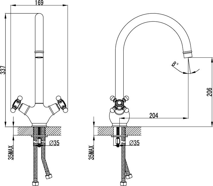 Цвет модели — хром. Это модное дизайнерское решение, которое удачно вписывается в Ретро. Чтобы смеситель долго сохранял привлекательный вид, при уходе рекомендуется исключить абразивные и агрессивные химические вещества.