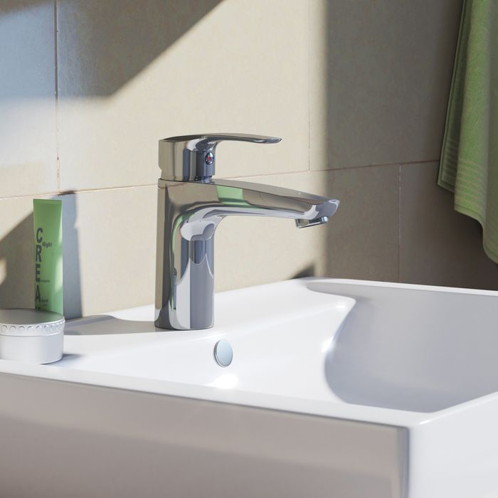 Смеситель для раковины Iddis позволяет легко отрегулировать напор горячей и холодной воды и получить поток нужной температуры. Для изготовления прибора используется латунь — долговечный материал, устойчивый к поверхностным механическим повреждениям и окислению. Тип управления — рычажное — делает смеситель надежным и простым в использовании.