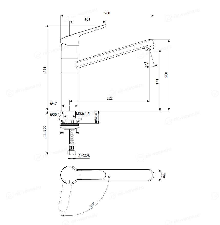 Смеситель для кухонной мойки позволяет легко отрегулировать напор горячей и холодной воды и получить поток нужной температуры. Для изготовления прибора используется латунь — долговечный материал, устойчивый к поверхностным механическим повреждениям и окислению. Тип управления — рычажное — делает смеситель надежным и простым в использовании.