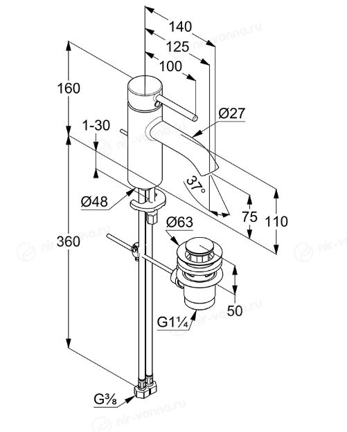 Смеситель Kludi Bozz 382630576 для раковины с донным клапаном