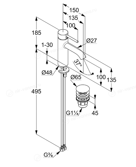 Смеситель Kludi Bozz 382880576 для раковины с донным клапаном