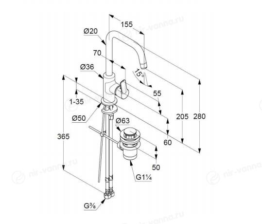 Смеситель Kludi Pure&Easy 370230565 для раковины донный клапан