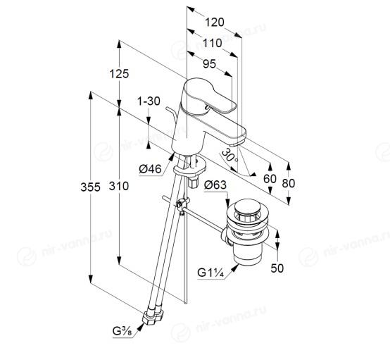 Смеситель Kludi Pure&Easy 372850565 для раковины донный клапан