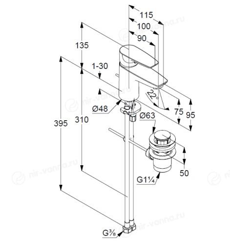 Смеситель Kludi Pure&Solid 343820575 для раковины донный клапан