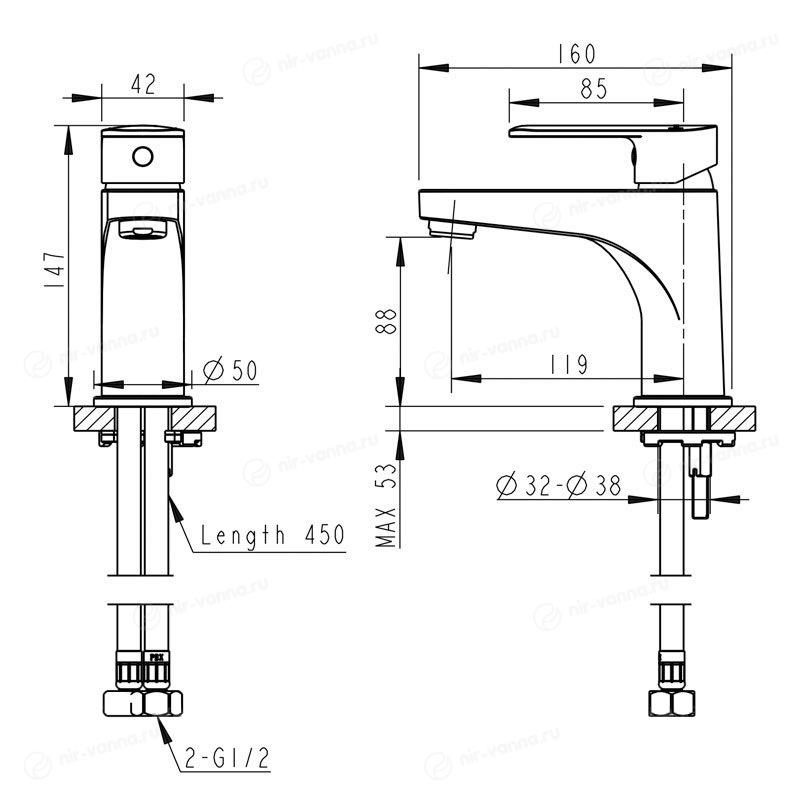 Цвет модели — хром. Это модное дизайнерское решение, которое удачно вписывается в современный стиль. Чтобы смеситель долго сохранял привлекательный вид, при уходе рекомендуется исключить абразивные и агрессивные химические вещества.