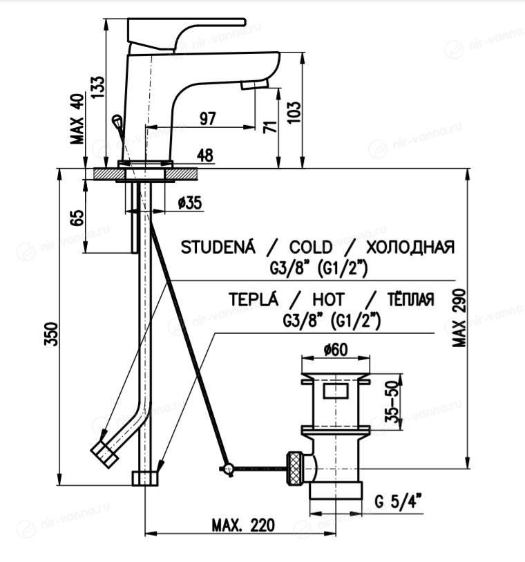 Смеситель для раковины Rav Slezak позволяет легко отрегулировать напор горячей и холодной воды и получить поток нужной температуры. Для изготовления прибора используется латунь — долговечный материал, устойчивый к поверхностным механическим повреждениям и окислению. Тип управления — рычажное — делает смеситель надежным и простым в использовании.