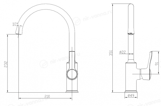 Цвет модели — хром. Это модное дизайнерское решение, которое удачно вписывается в Ретро. Чтобы смеситель долго сохранял привлекательный вид, при уходе рекомендуется исключить абразивные и агрессивные химические вещества.