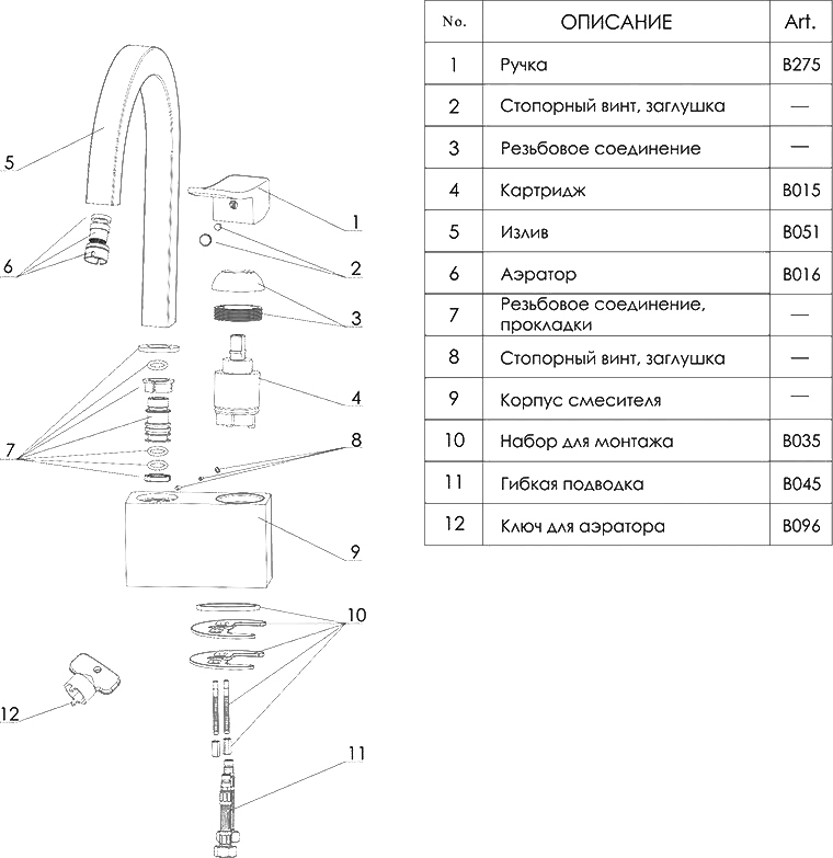 Цвет модели — белый / хром. Это модное дизайнерское решение, которое удачно вписывается в современный стиль. Чтобы смеситель долго сохранял привлекательный вид, при уходе рекомендуется исключить абразивные и агрессивные химические вещества.