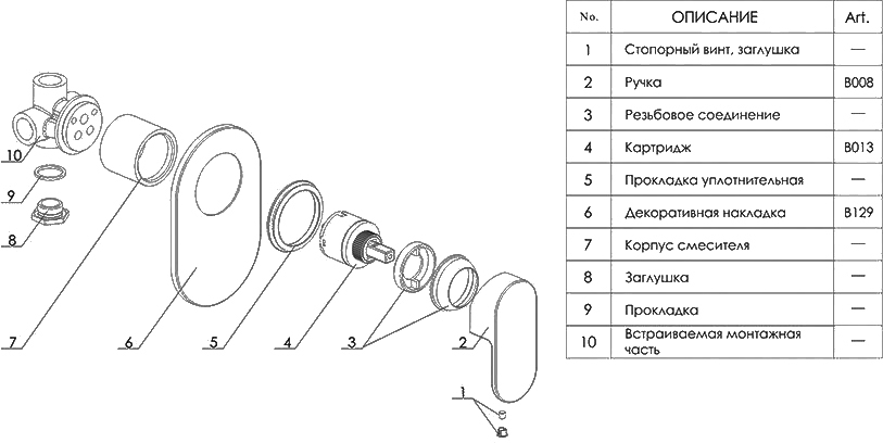 Смеситель Wasserkraft Donau 5351 С ВНУТРЕННЕЙ ЧАСТЬЮ, для душа