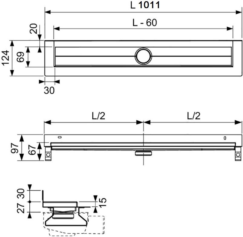 Душевой лоток Tece Tecedrainline 1000 пристенный монтаж без сифона