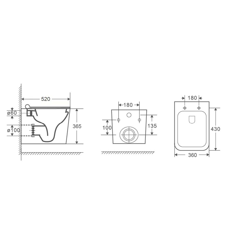 AZ-2002 (квадратный) Размер 490*370*360 мм. Azario подвесной безободковый унитаз в комплекте с сидением микролифт.