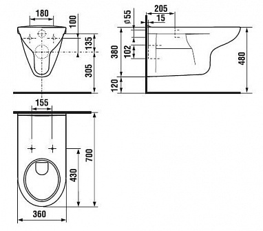 Подвесной унитаз Deep by Jika (Olymp) 36х70 см, удлиненный, с сиденьем для унитаза Deep by Jika (Olymp) без крышки с сиденьем