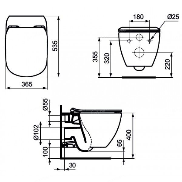 Подвесной унитаз Ideal Standard Tesi Aquablade 36,5*53,5 безободковый с крышкой-сиденьем микролифт