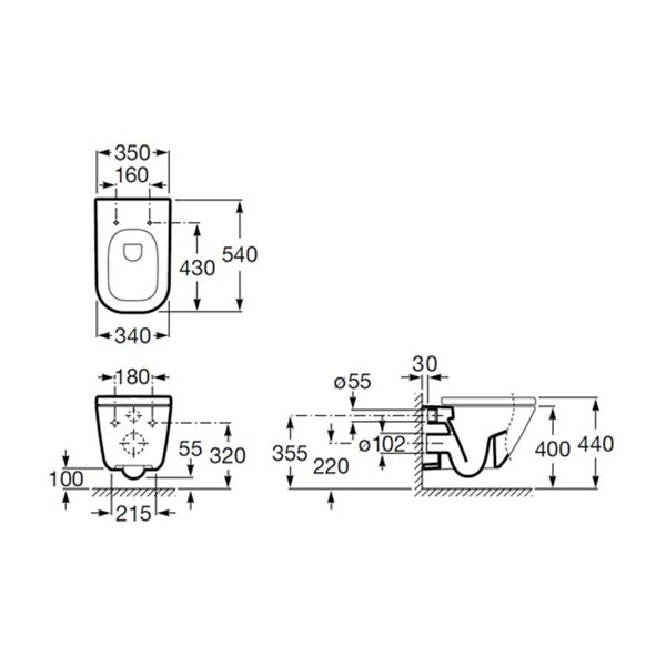 Подвесной унитаз Roca Gap Rimless 34*54 безободковый