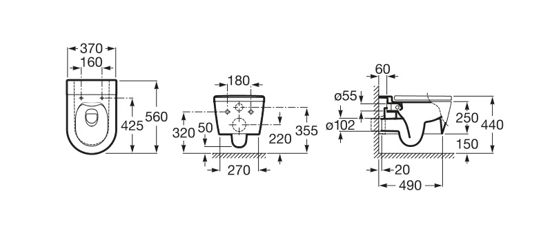 Подвесной унитаз Roca Inspira Round 37*56 безободковый
