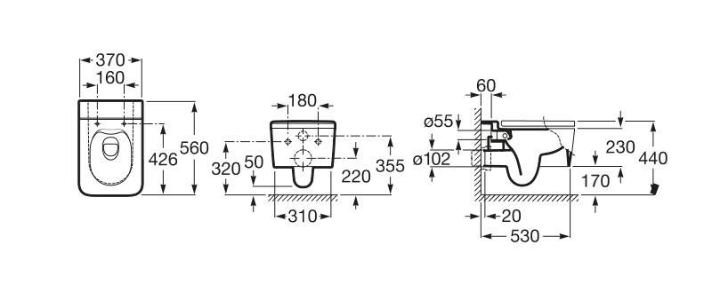 Подвесной унитаз Roca Inspira Square 37*56 безободковый