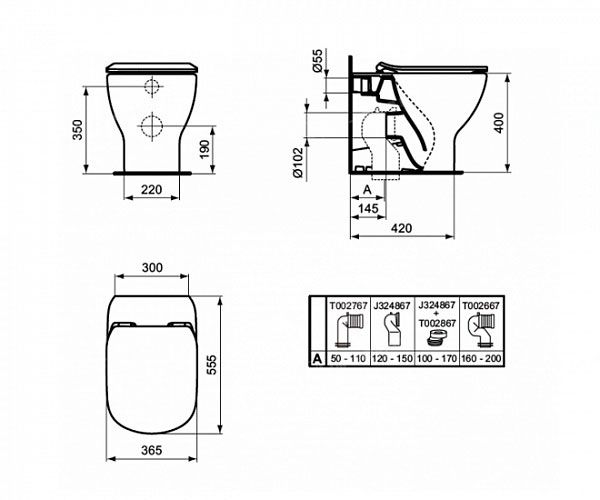 Приставной унитаз Ideal Standard Tesi Aquablade 36,5*55,5 безободковый с крышкой-сиденьем микролифт Slim