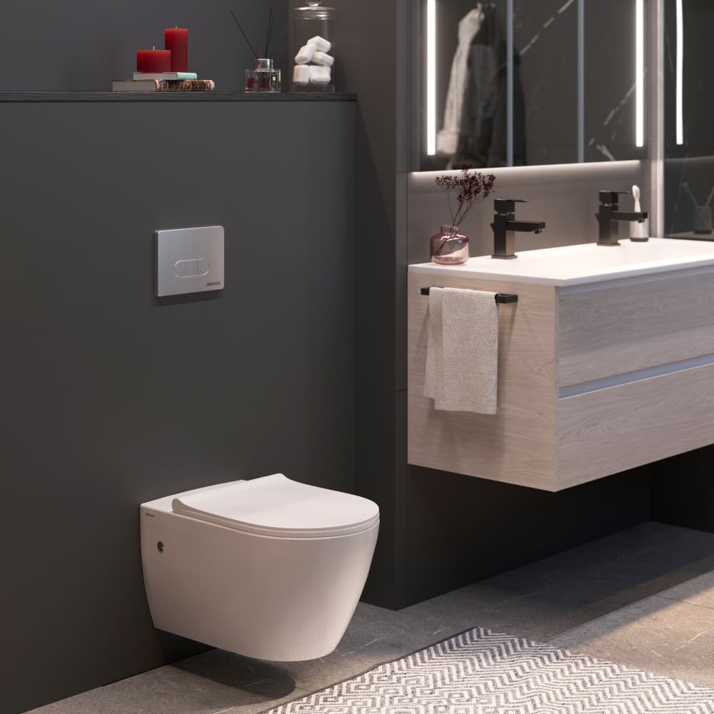 Унитаз BERGES подвесной MASCON Rimless 57 см, сиденье дюропласт Toma Slim SO