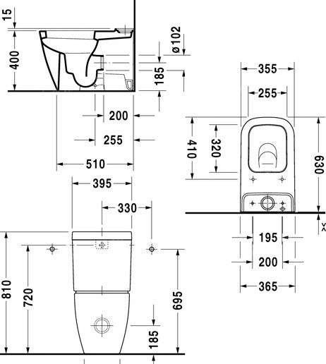 Duravit 2134090000 Happy D.2 Унитаз напольный 365*630 мм в комплекте с сиденьем и бачком