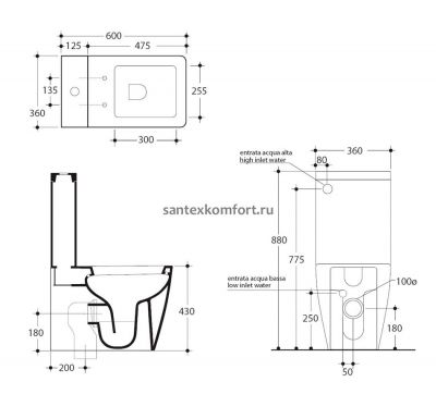 Унитаз-компакт Kerasan Ego 35*60 с крышкой-сиденьем микролифт