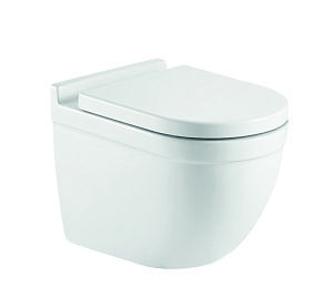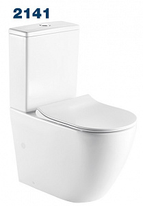2142 Azario Pavia (круглый) подвесной безободковый унитаз в комплекте с сидением микролифт. Размер 530*355*360 мм.