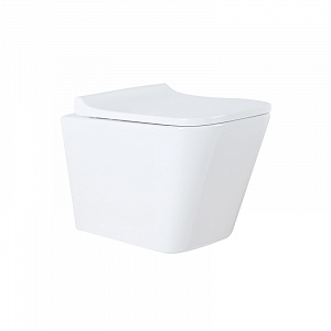 Azario Teramo (квадратный) подвесной безободковый унитаз в комплекте с сидением микролифт. Размер 490*340*350 мм.