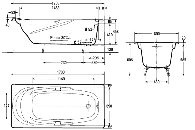 Чугунная ванна Jacob Delafon 170 прямоугольная — это прочность, надежность и долговечность. Она не трескается, не царапается, не боится коррозии. Ванна из чугуна длительное время держит тепло, поэтому отпадает необходимость время от времени подливать горячую воду. Чугун обладает хорошей шумоизоляцией: всплески воды будут не слышны. Чтобы сохранить белый цвет эмалевого покрытия, можно использовать любую бытовую химию.