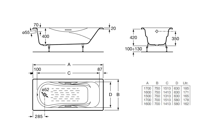 Чугунная ванна Roca 160 прямоугольная — это прочность, надежность и долговечность. Она не трескается, не царапается, не боится коррозии. Ванна из чугуна длительное время держит тепло, поэтому отпадает необходимость время от времени подливать горячую воду. Чугун обладает хорошей шумоизоляцией: всплески воды будут не слышны. Чтобы сохранить белый цвет эмалевого покрытия, можно использовать любую бытовую химию.