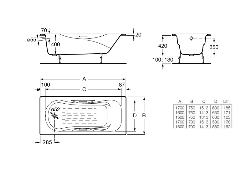 Чугунная ванна Roca 170 прямоугольная — это прочность, надежность и долговечность. Она не трескается, не царапается, не боится коррозии. Ванна из чугуна длительное время держит тепло, поэтому отпадает необходимость время от времени подливать горячую воду. Чугун обладает хорошей шумоизоляцией: всплески воды будут не слышны. Чтобы сохранить белый цвет эмалевого покрытия, можно использовать любую бытовую химию.