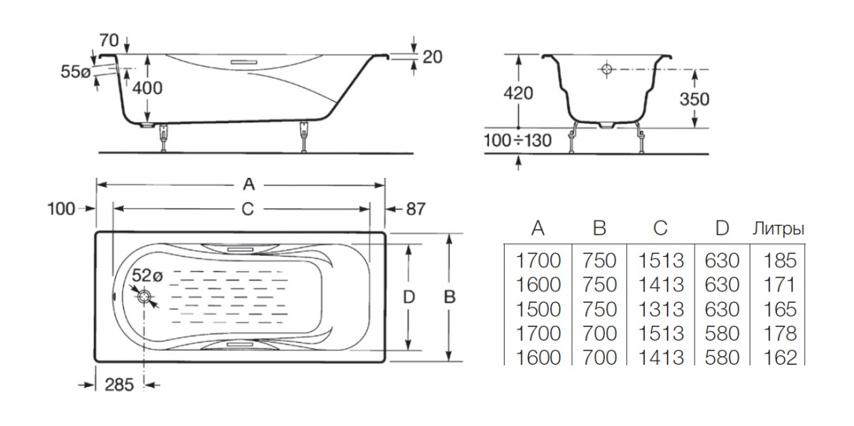 Чугунная ванна Roca 170 прямоугольная — это прочность, надежность и долговечность. Она не трескается, не царапается, не боится коррозии. Ванна из чугуна длительное время держит тепло, поэтому отпадает необходимость время от времени подливать горячую воду. Чугун обладает хорошей шумоизоляцией: всплески воды будут не слышны. Чтобы сохранить белый цвет эмалевого покрытия, можно использовать любую бытовую химию.