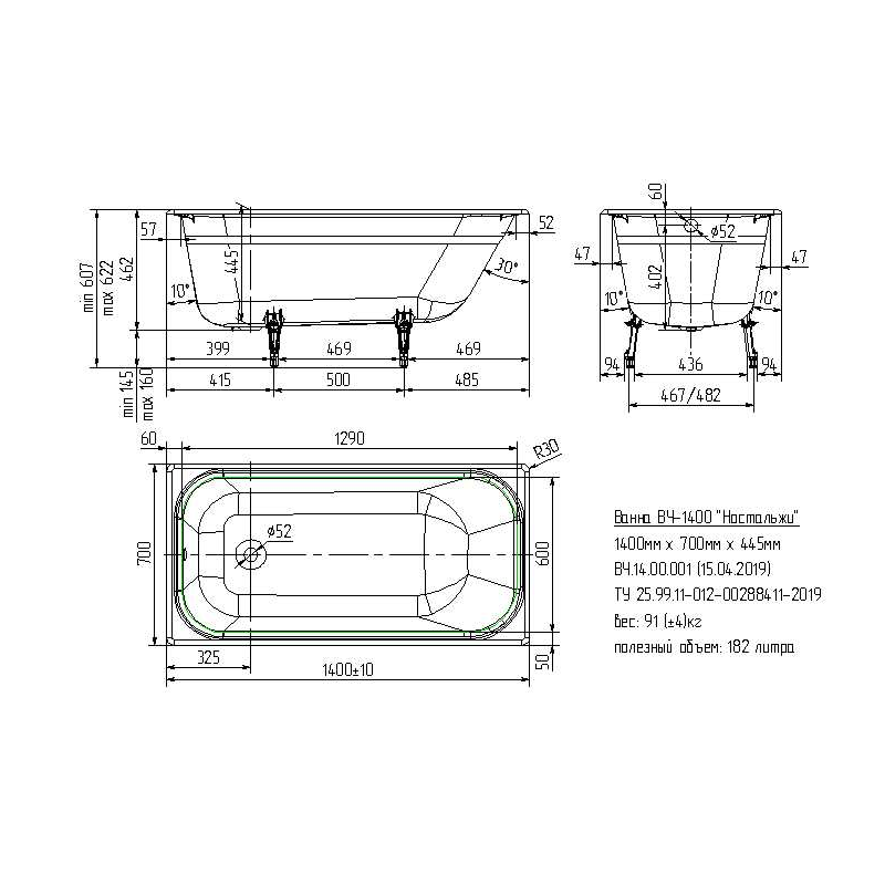 Чугунная ванна Универсал 140 прямоугольная — это прочность, надежность и долговечность. Она не трескается, не царапается, не боится коррозии. Ванна из чугуна длительное время держит тепло, поэтому отпадает необходимость время от времени подливать горячую воду. Чугун обладает хорошей шумоизоляцией: всплески воды будут не слышны. Чтобы сохранить белый цвет эмалевого покрытия, можно использовать любую бытовую химию.